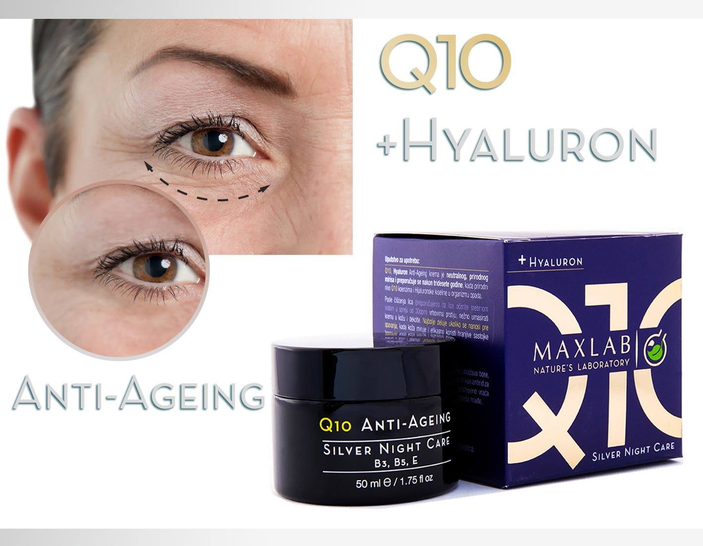 Q10-Hyaluron Anti-Ageing krema vidljivo ublažava bore, dubinski hidrira i regenerira kožu i može biti ujedno i antirid, pa se koristi i kod predijela usana, očiju, dekoltea.